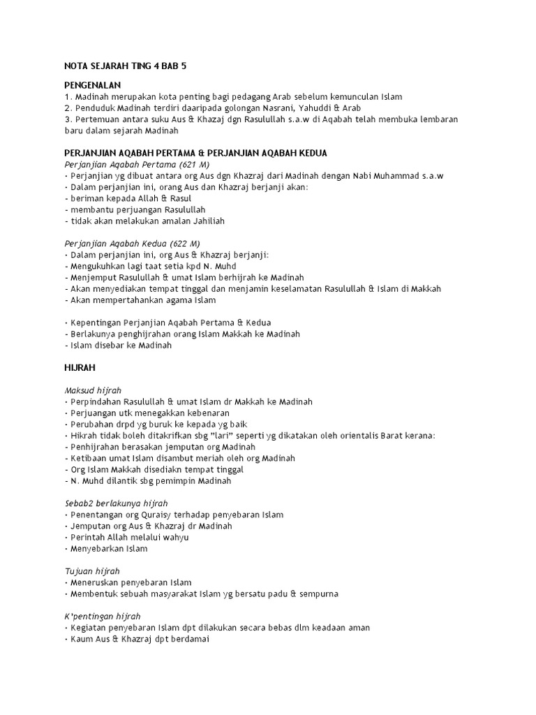Sejarah kertas 3 tingkatan 4 (semua bab) : Kerajaan islam di madinah membincangkan tentang perjanjian aqabah yang dimeteraikan antara penduduk madinah dengan nabi muhammad. Nota ringkas sejarah tingkatan 5 spm. Semua informasi dan maklumat berdasarkan buku teks sejarah tingkatan 4 tahun 2020.cikgu cikgu boleh menggunakan video ini untuk tujuan p&p. Disini falif.com ingin kongsikan nota ringkas bagi subjek sejarah bab 8 tingkatan 5 yang bertajuk pembangunan dan perpaduan untuk kesejahteraan.