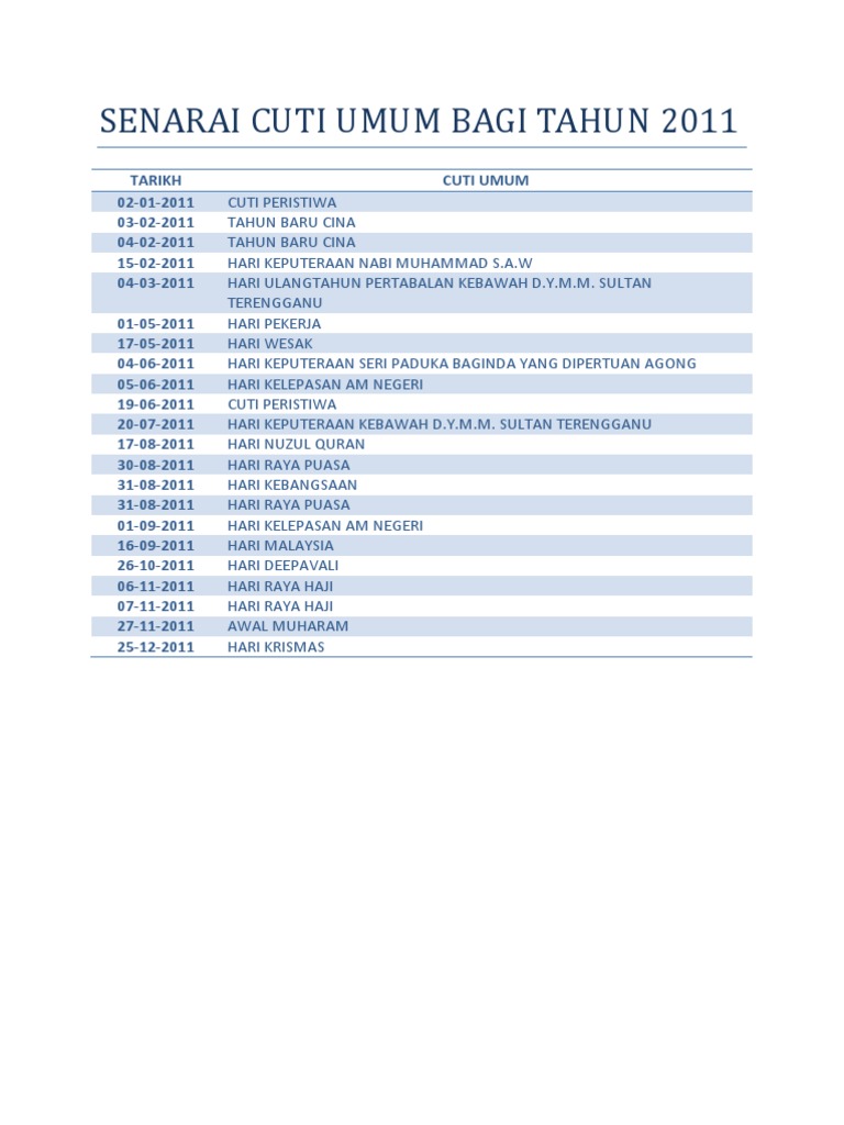 0%0% found this document useful, mark this document as useful. Berikut takwim persekolahan terkini sekolah malaysia. Bukan apa, senang nak plan percutian untuk tahun depan, maklumlah air asia ni asyiklah hantar email promosi big deal dia je, tak ke kecurr je baca kan hahaha. Antara maklumat penting yang selalu dicari pada setiap bulan adalah tarikh cuti umum / hari kelepasan am. Berikut dikongsikan maklumat berkaitan jadual cuti umum terengganu tahun 2020 yang meliputi hari kelepasan am, tarikh dan hari ◾tahun baru 2019 1 jan selasa ◾hari thaipusam 21 jan isnin ◾tahun baru cina 5/6 feb selasa/rabu ◾hari pekerja 1 mei rabu ◾hari wesak 19 mei ahad ◾.